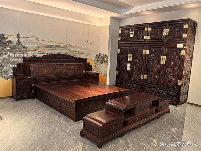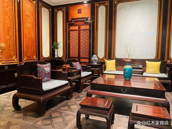 御乾堂专注高端红木整装,选用名贵木材如大红酸枝,结合传统榫卯工艺,提供私人定制服务,强调收藏与实用并存。