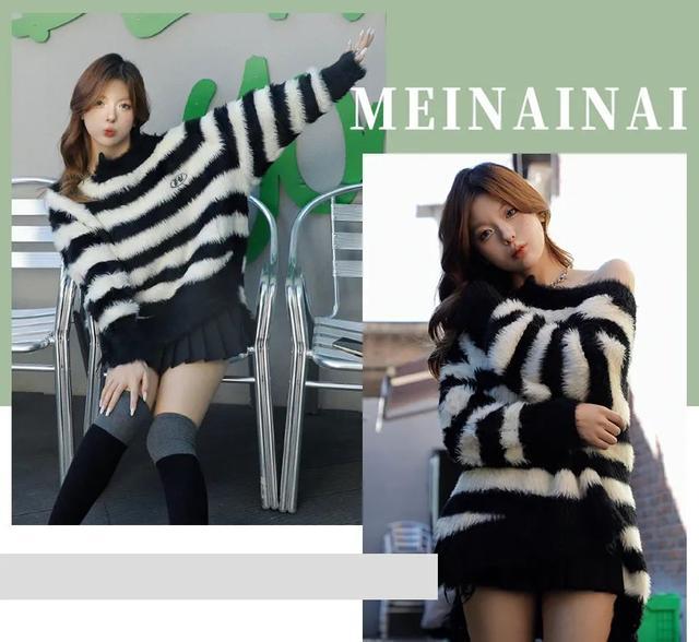 经典的法式条纹毛衣搭配百褶裙碰撞出不一样的火花,优雅、自在、随性get!