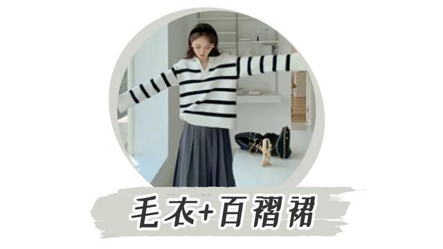 经典的法式条纹毛衣搭配百褶裙碰撞出不一样的火花,优雅、自在、随性get!