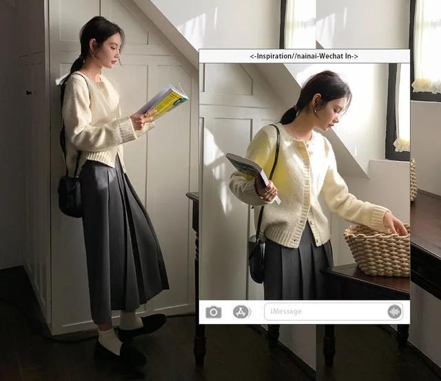 毛衣+百褶裙+短靴,是秋季的万能搭配公式没错了✔️简单慵懒,随意又好看~